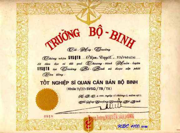 - khóa 4/73: 26/2/1973 ( vào TTHL Quang Trung - thuộc Tiểu đòan Trương Tấn Bửu, Liên đoàn B, gồm 3 Đại đội: B1A, B1B, B1C )