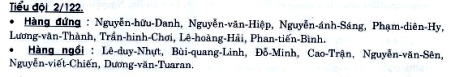 | Tiểu đội 1/122 | Tiểu đội 2/122 | |