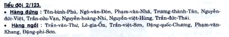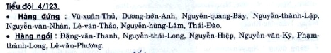 | Tiểu đội 1/123 | Tiểu đội 2/123 | |