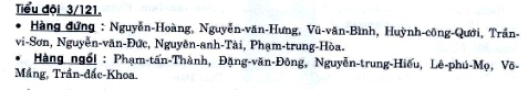 | Tiểu đội 3/121 | Tiểu đội 4/121 | |
