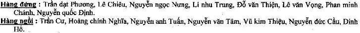 * Đại đội trường ĐĐ 14 : * Trung đội trưởng 141: * Trung đội trưởng 142: * Trung đội trưởng 143: * Trung đội trưởng 144: |