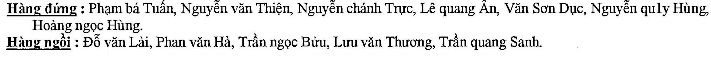 * Đại đội trường ĐĐ 16 : Trung úy Trần Văn Lan * Trung đội trưởng 162: * Trung đội trưởng 163: * Trung đội trưởng 164: |