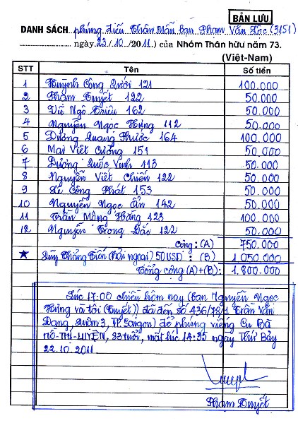 | Tương trợ cho con TT Phan Khắc Đang (4/112) nằm bịnh viện.... - |