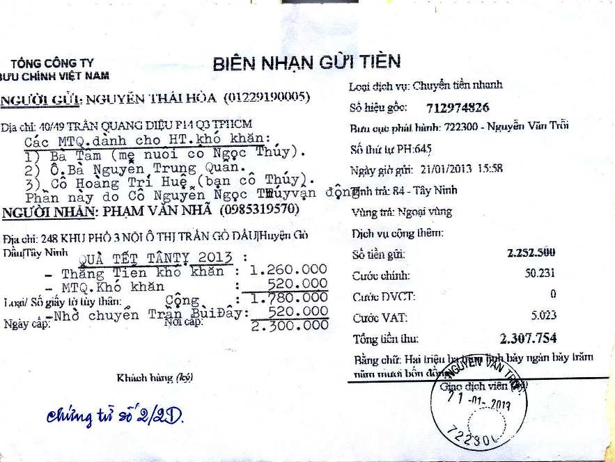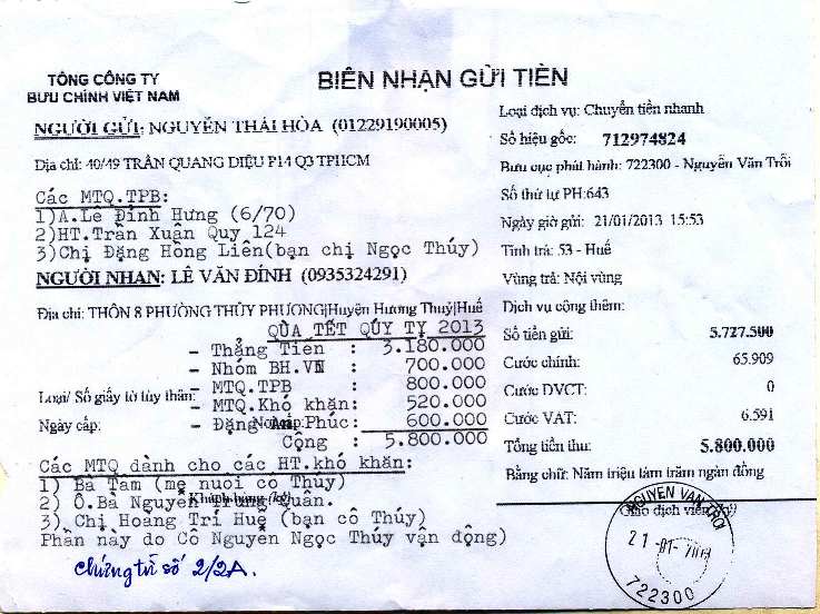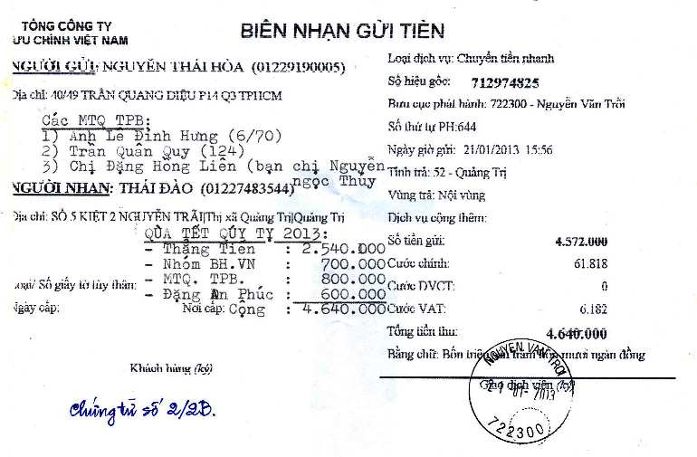 Tôi là TPB.TT. Phạm Tuyết đã nhận đủ các phần qùa liệt kê trong "Bảng tổng kết @ ký nhận qùa Cây mùa Xuân