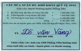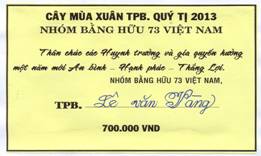 + Các Mạnh thường quân như : HT. Lê Đình Hưng (k.6/70 –