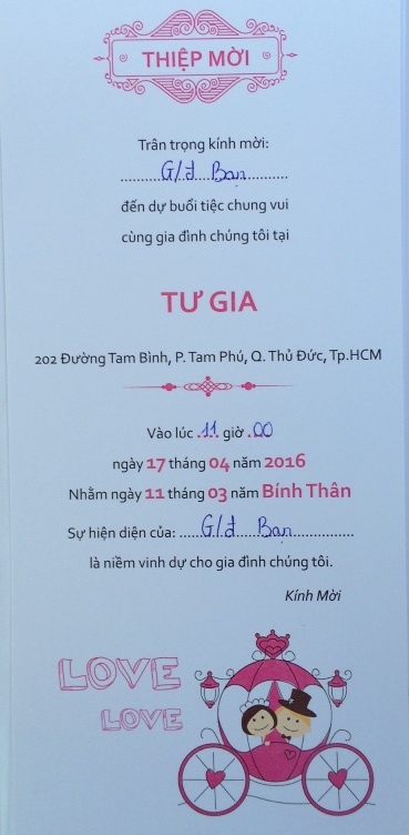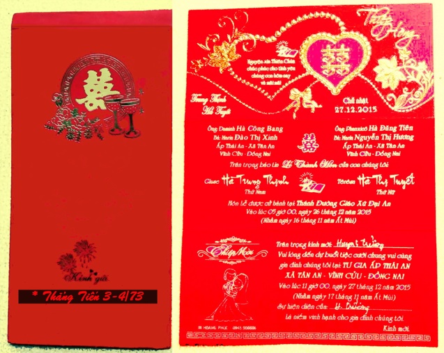 Nhận được tin vui của: TT Phạm hữu Hiệp- 4/122 tổ chức lễ Thành Hôn cho con trai tại Nam California, Toàn thể cựu SVSQ khóa THẲNG TIẾN, chia vui cùng gia đình và chúc hai cháu trăm năm hạnh phúc. |