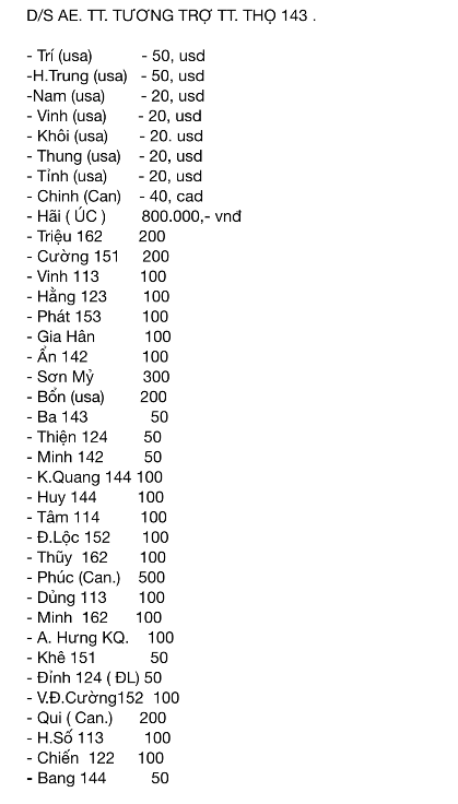 Thay mặt các bạn tham dự chuyến đi ,chúng tôi xin gởi đến quý HT trong cũng như ngoài nước lời cám ơn chân thành ,đã giúp công ,góp sức ,tài chính cũng như động viên tinh thần AE .Chúng tôi rất tự hào trong tình HUYNH ĐỆ CHI BINH ,một số bạn từ ngày ra trường nay mới gặp được AE ,các bạn Quảng Trị mấy chục năm nay mới có dịp thăm Saigon ,Đà lạt ,các cháu bé,quý phu nhân cũng có dịp khoe sắc khoe tài ...